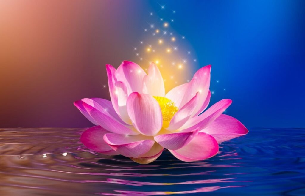 The Lotus flower represents the journey of the human soul from the darkness to the light of wisdom. The blossoming of the lotus flower is also representative of the revelation of the true being. Mud represents the suffering and obstacles of life, and the lotus flower symbolizes our journey of overcoming these obstacles. The journey can be interpreted as a progression from a state of vexation to a state of purity.